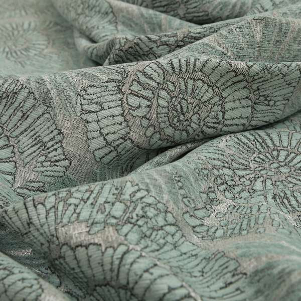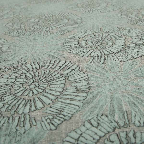 This aqua silver grey floral medallion design upholstery fabric is soft and luxurious, making it perfect for creating elegant Roman blinds. The chenille material adds a touch of texture and the colours are sure to complement any home decor. Elevate your windows with this high-quality, durable fabric.