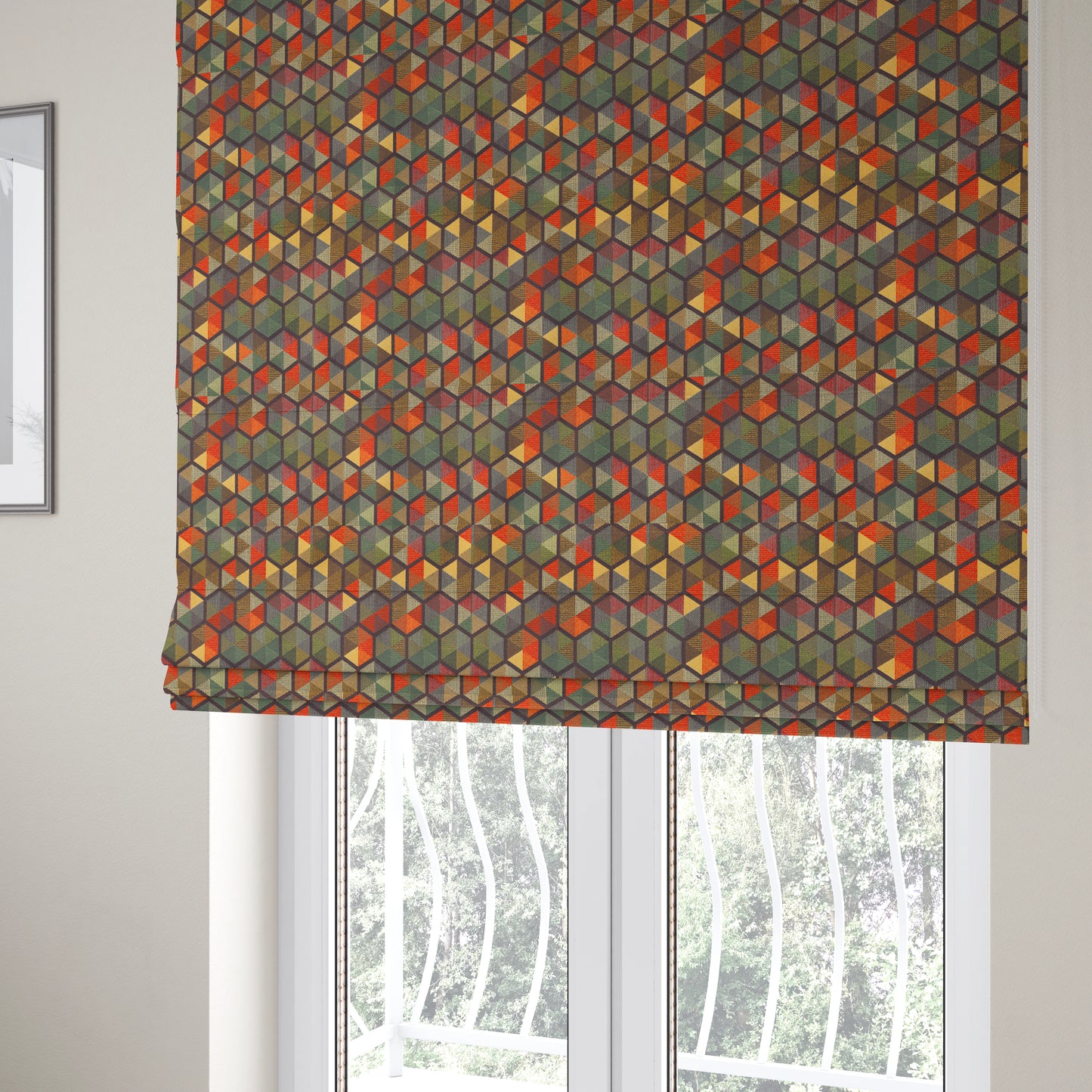 This Arcadia geometric hexagon pattern purple multicolour chenille upholstery fabric is perfect for Roman blinds. With its unique design and durable material, it adds a touch of sophistication and style to any space. The multicolour palette makes it easy to match with any decor, while the chenille fabric offers a soft and luxurious feel. Transform your space with this exquisite fabric.