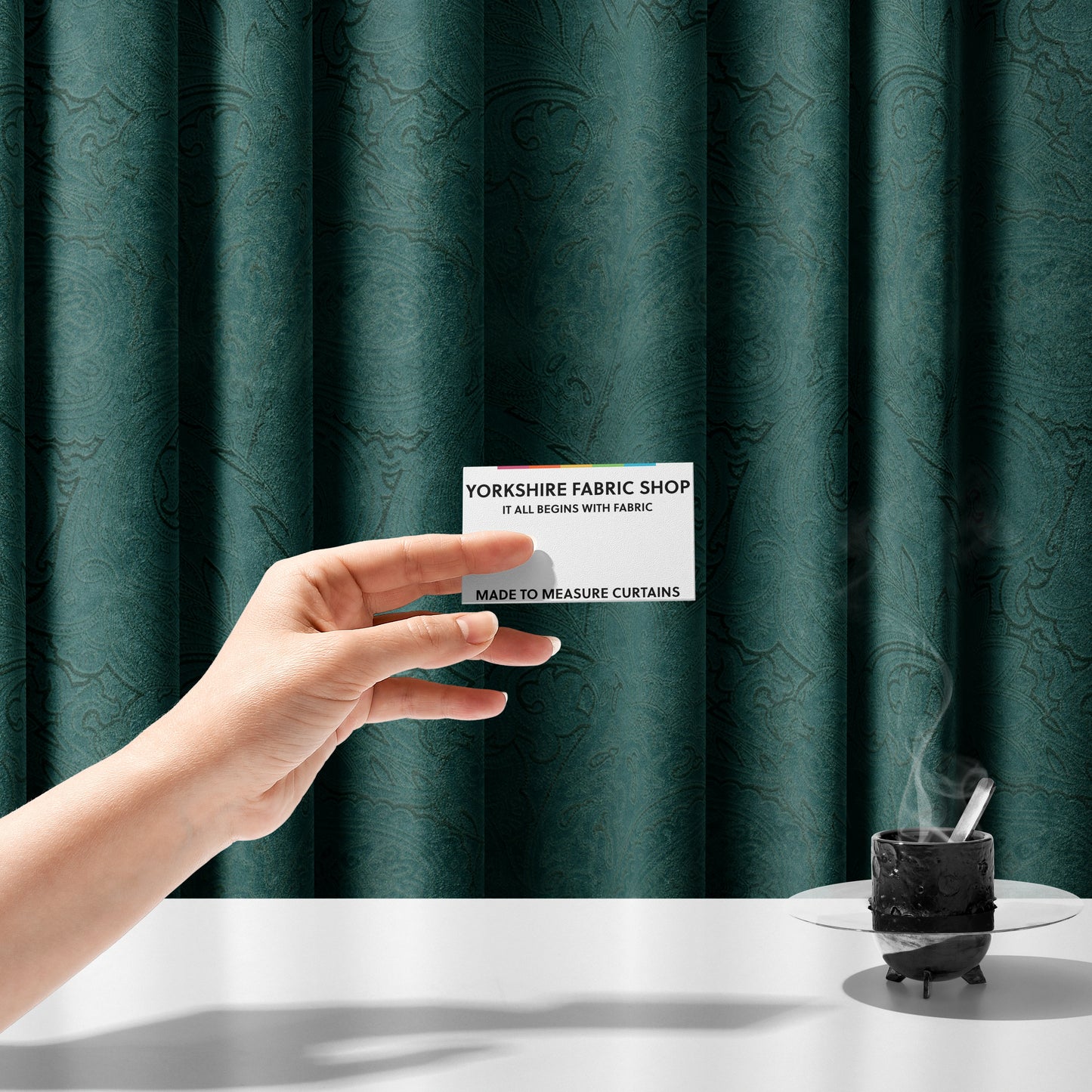 Expertly crafted with laser cut patterns, the Athena curtains offer a elegant touch to any room. Made from soft velveteen fabric, these teal velvet curtains provide the perfect balance of style and comfort. Fully customizable with made to measure options for a perfect fit.