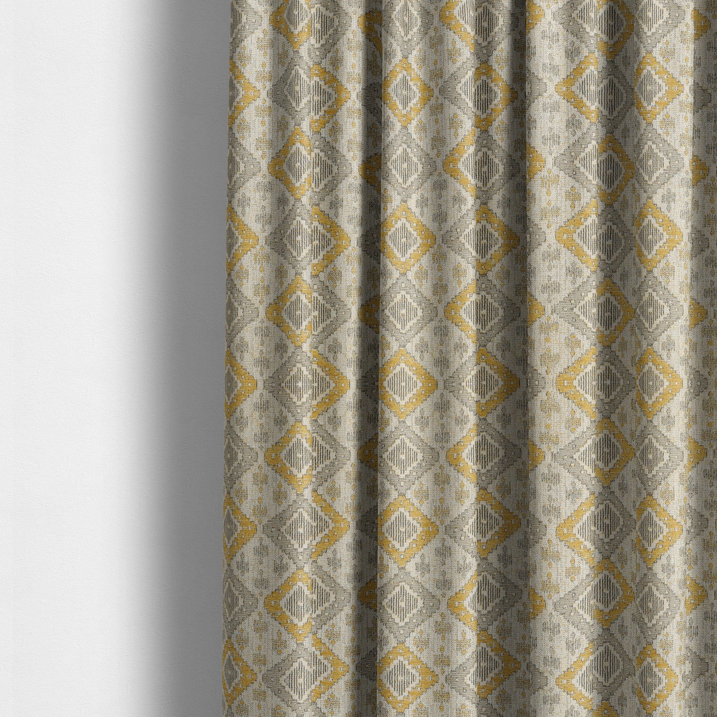 Upgrade your home decor with our Atmosfera quality woven curtains, featuring a geometric inspired pattern in a vibrant yellow colour. Made to measure for a perfect fit, these curtains are sure to elevate any room with their modern and stylish design.