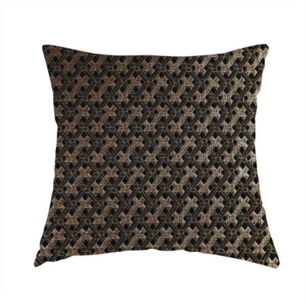 Experience luxurious comfort and style with our Ayon geometric pattern black gold coloured with shine furnishing fabric. Handmade cushions add a touch of elegance to any space. With its unique design and high-quality materials, these cushions are sure to impress.