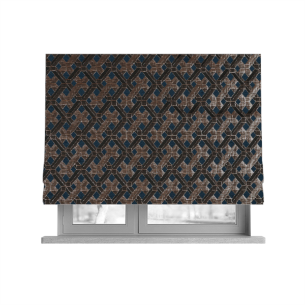 Add a touch of modern elegance to your home with Ayon geometric pattern blue gold fabric. Featuring a subtle shine, this furnishing fabric is perfect for creating luxurious Roman blinds. Make a statement in any room with this versatile and stylish addition.