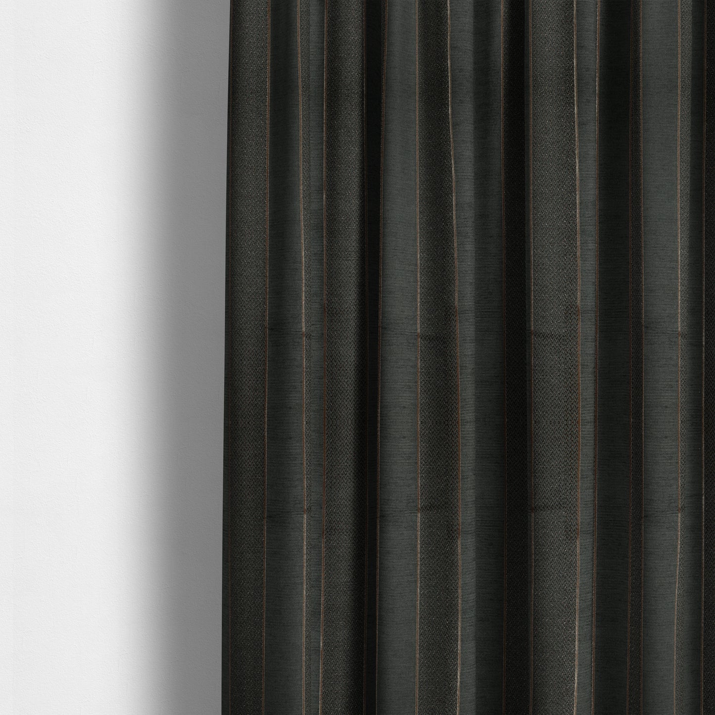 This Ayon striped pattern fabric features a stylish grey and gold color scheme with a subtle shine. Made to measure curtains provide a perfect fit for your windows, creating a polished and tailored look for any room. Elevate your home decor with this elegant furnishing fabric.