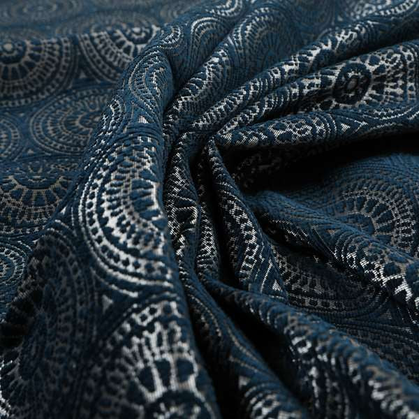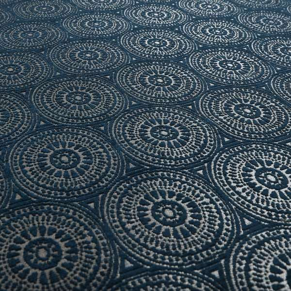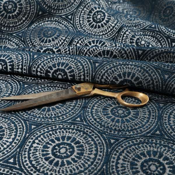 Introducing the Azima jo-313. This luxurious fabric features a unique round pattern with a navy blue and silver colour scheme. Made for Roman blinds, the fabric will add a modern and elegant touch to any room.