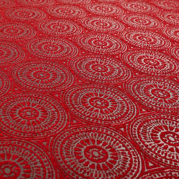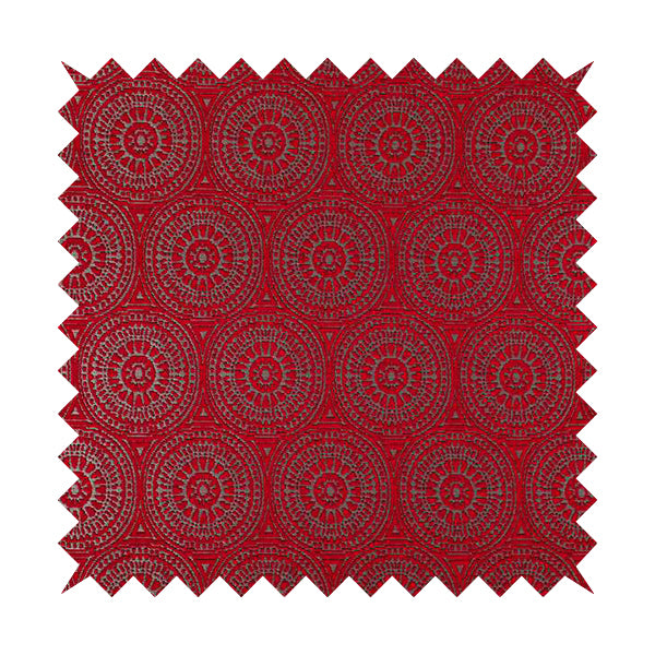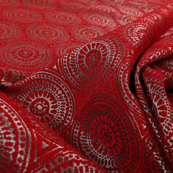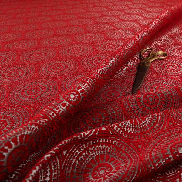 Experience the perfect blend of modern and classic with our Azima fabric in vibrant red and silver shine. Its round pattern adds a unique touch to any room while providing durable and stylish upholstery for your furniture. Elevate your space with this versatile fabric, perfect for Roman blinds.