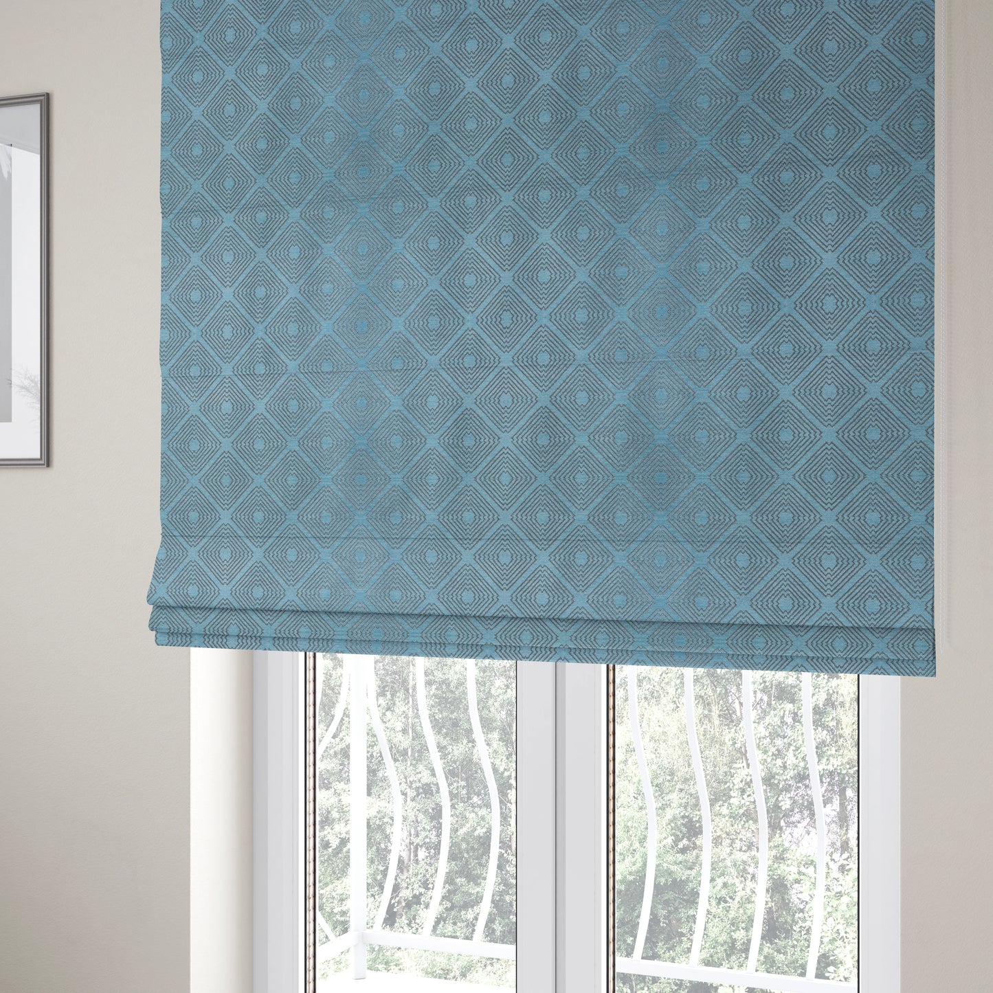 The Azima modern sharp geometric pattern light blue shine upholstery fabric jo-319 is the perfect choice for adding a touch of modern style to your home decor. With its sharp geometric pattern and vibrant blue shine, this fabric will bring a contemporary feel to any space. Update your Roman blinds with this durable and eye-catching fabric.