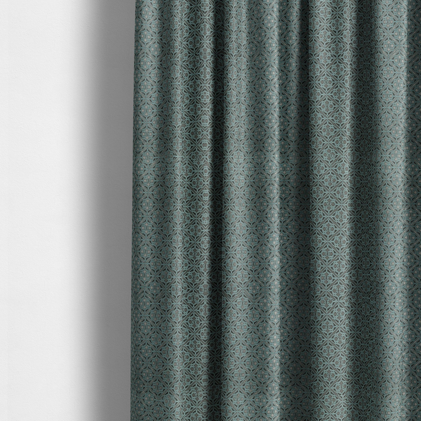 Crafted with precision and attention to detail, Azima small medallion geometric pattern upholstery fabric adds a touch of sophistication to any space. Made to measure for a perfect fit, these curtains feature a light blue and silver shine design that elevates any room's style. Experience the luxury of custom curtains with Azima.