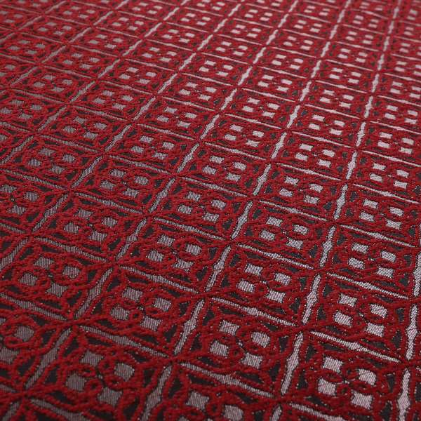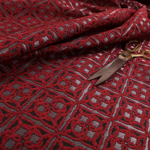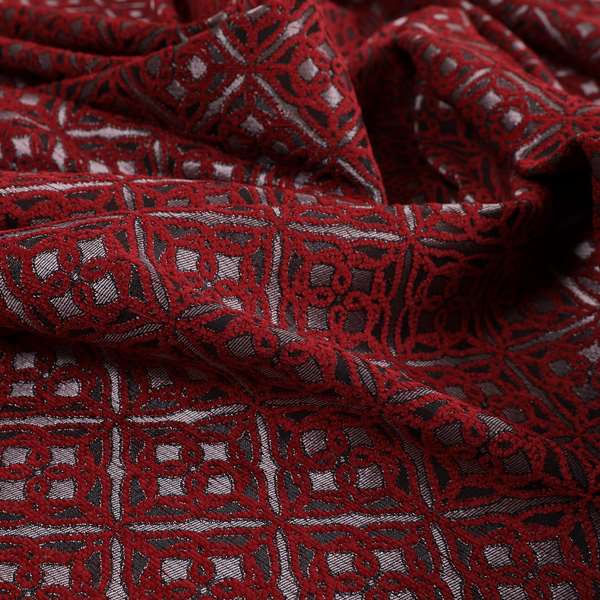 Enhance the visual appeal of any space with Azima Roman blinds. The small medallion geometric pattern in red and silver adds a touch of elegance. Soft and durable, this upholstery fabric is perfect for Roman blinds, bringing both style and function to your windows.