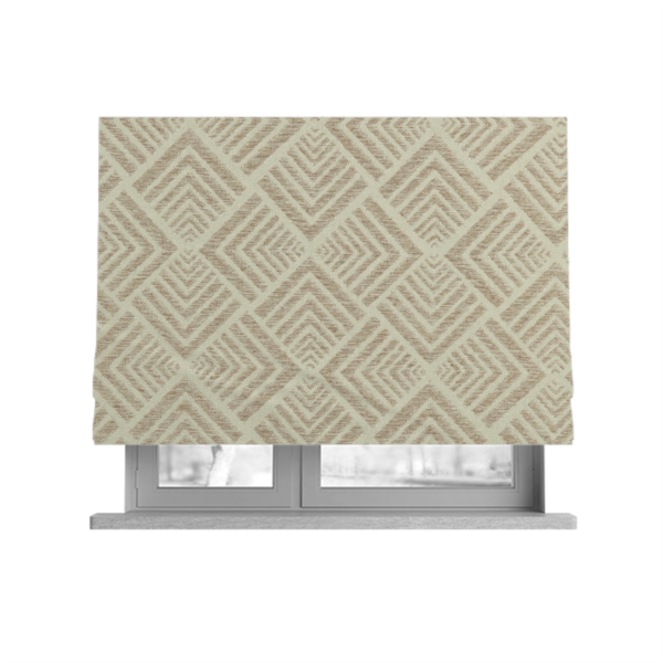 Experience elegant sophistication with our Bahija geometric uniformed pattern cream beige colour upholstery fabric ctr-2471. Crafted with a Roman blinds design, this fabric features a subtle yet eye-catching geometric pattern in cream and beige. Made for easy application and durable use, elevate your space with this luxurious fabric.