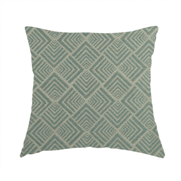 This handmade upholstery fabric features a stunning geometric pattern in a bold teal colour. Perfect for creating eye-catching cushions that add a touch of modern elegance to any space. Crafted with expert precision and quality, this fabric is sure to elevate your home decor.