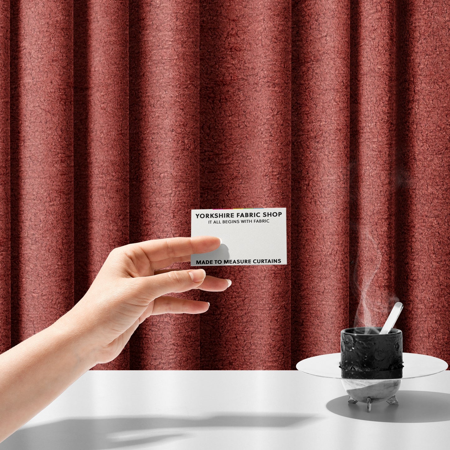 Expertly crafted and luxurious, our Berlin boucle textured chenille fabric in crimson red adds a touch of elegance to any room. Its unique texture and rich colour provide both visual and tactile appeal, making it the perfect choice for custom-made curtains. Elevate your home decor with this premium fabric.