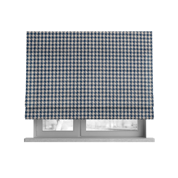 Expertly crafted with a houndstooth pattern, this jacquard flat weave fabric in a rich blue hue will elevate any upholstery or furnishing project. Made from durable materials, it is perfect for creating stunning Roman blinds that will add a touch of elegance to any room.