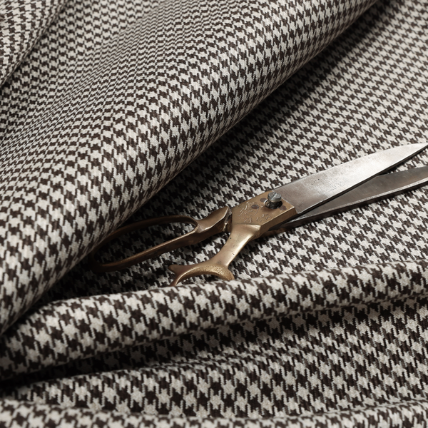 Expertly crafted with a berwick houndstooth pattern and jacquard flat weave, this brown upholstery fabric is perfect for furnishing and creating Roman blinds. Its durable and elegant design adds a touch of sophistication to any space.