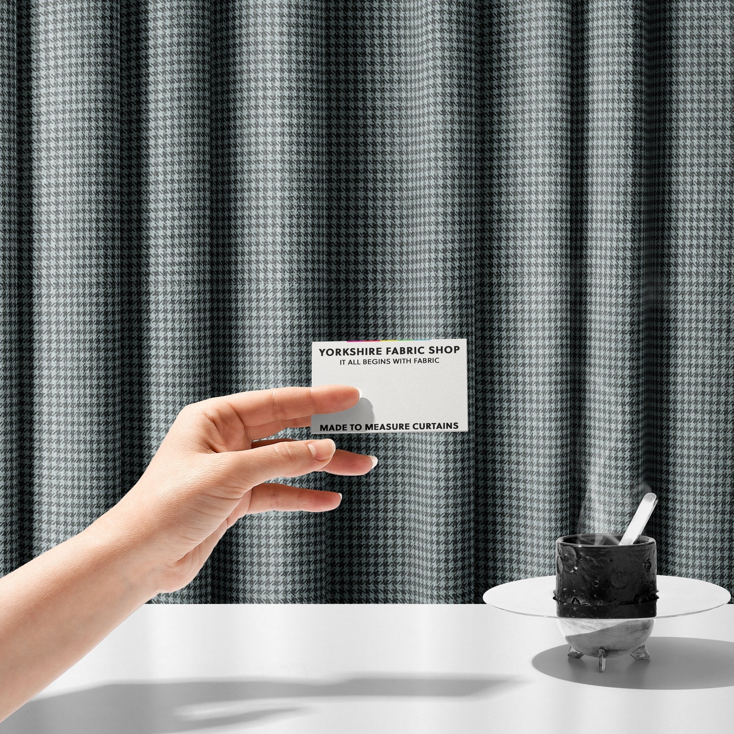 Expertly crafted with a houndstooth pattern and jacquard weave, the Berwick Upholstery Fabric offers a touch of sophistication to any room. The flat weave ensures durability while the grey colour adds a modern touch. Perfect for custom-made curtains that elevate your decor.