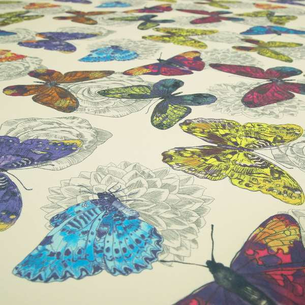 Elevate your home decor with our Beth butterfly pattern tropical yellow blue pink fabrics. Made with high-quality linen effect material, these fabrics are perfect for upholstery and curtains. Bring a touch of nature into your space with the vibrant colours and elegant butterfly print. Available in made-to-measure sizes.
