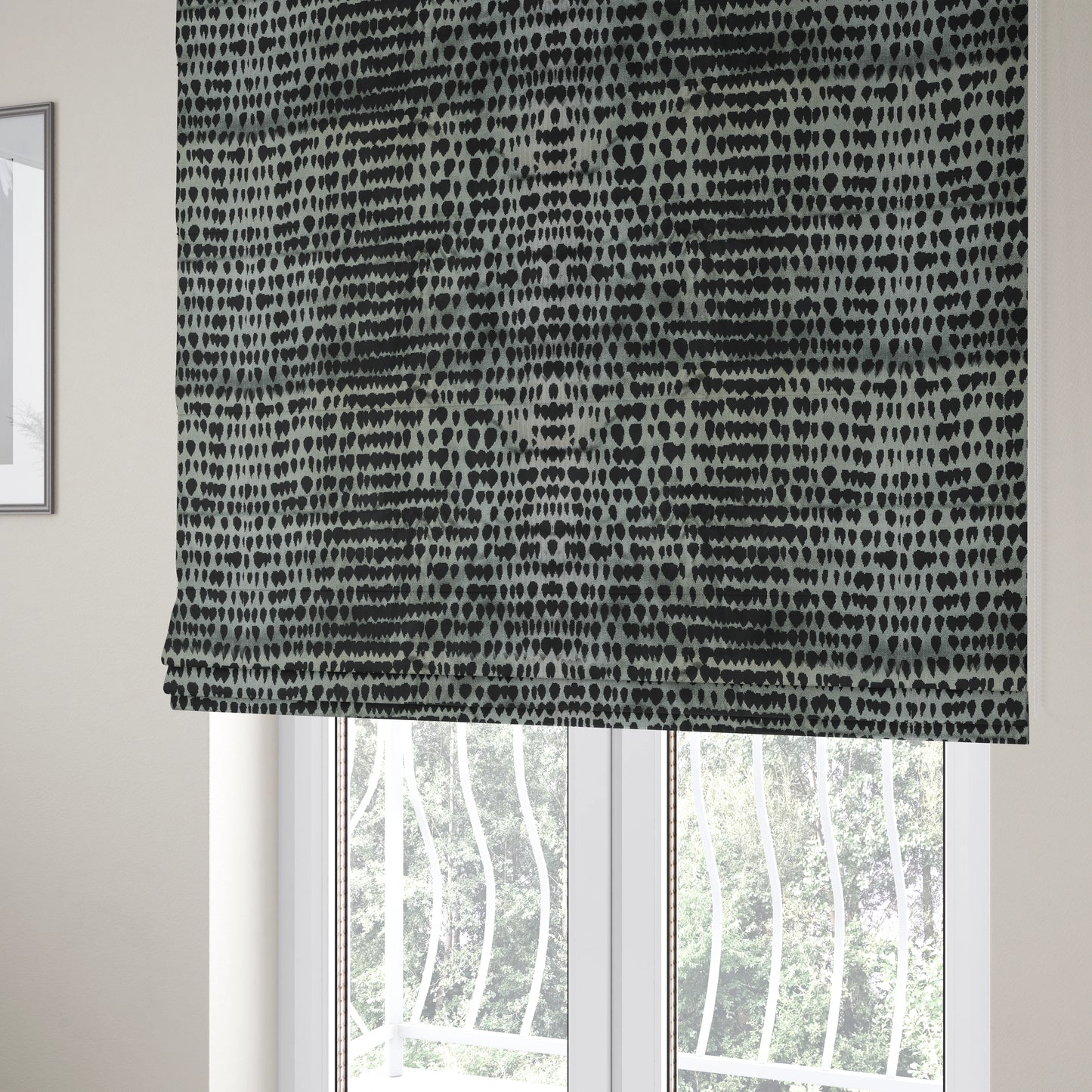 Expertly crafted with heavy quality velvet upholstery fabric, these Roman blinds boast a sleek black grey colour with an eye-catching abstract geometric pattern. Perfect for adding a touch of sophistication and style to any room, while also providing a durable and functional window covering solution.