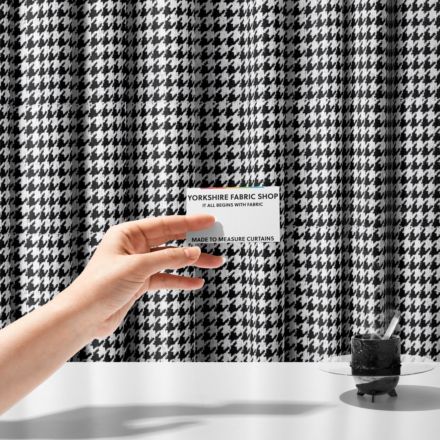 Black White Checked Dog Tooth Pattern Soft Chenille Upholstery Fabric JO-255 - Made To Measure Curtains