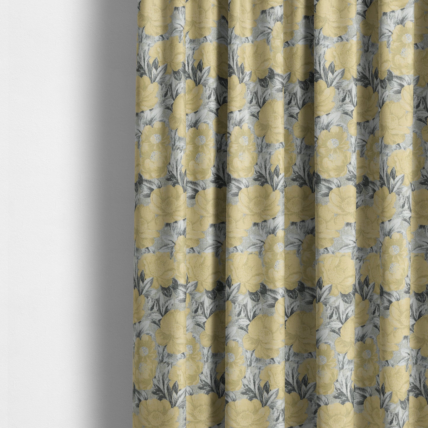 Expertly crafted from high-quality fabric, our Bloomsbury curtains feature a stunning floral pattern with a shiny yellow finish. Made to measure for a perfect fit, these curtains will add a touch of elegance to any room. Transform your home with our premium furnishing fabric.