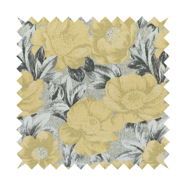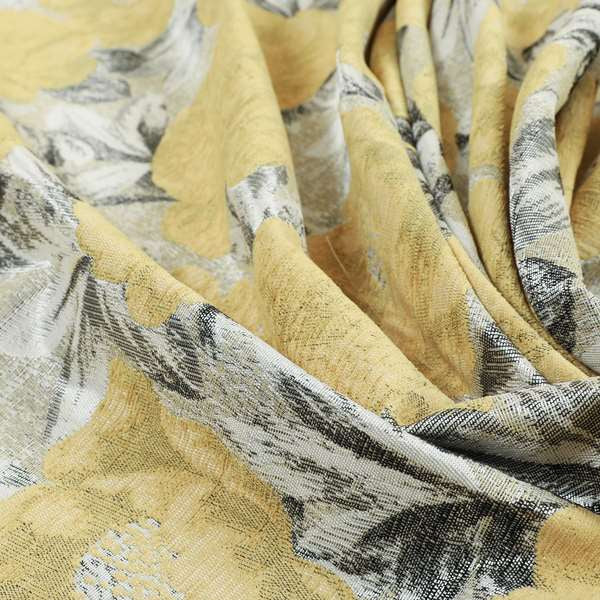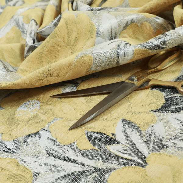 This luxurious fabric jo-386 features a sophisticated floral pattern and boasts a shiny yellow finish. Made with quality furnishing fabric, it is perfect for creating stylish Roman blinds that will elevate any room. Bring a touch of elegance to your décor with this high-quality fabric.