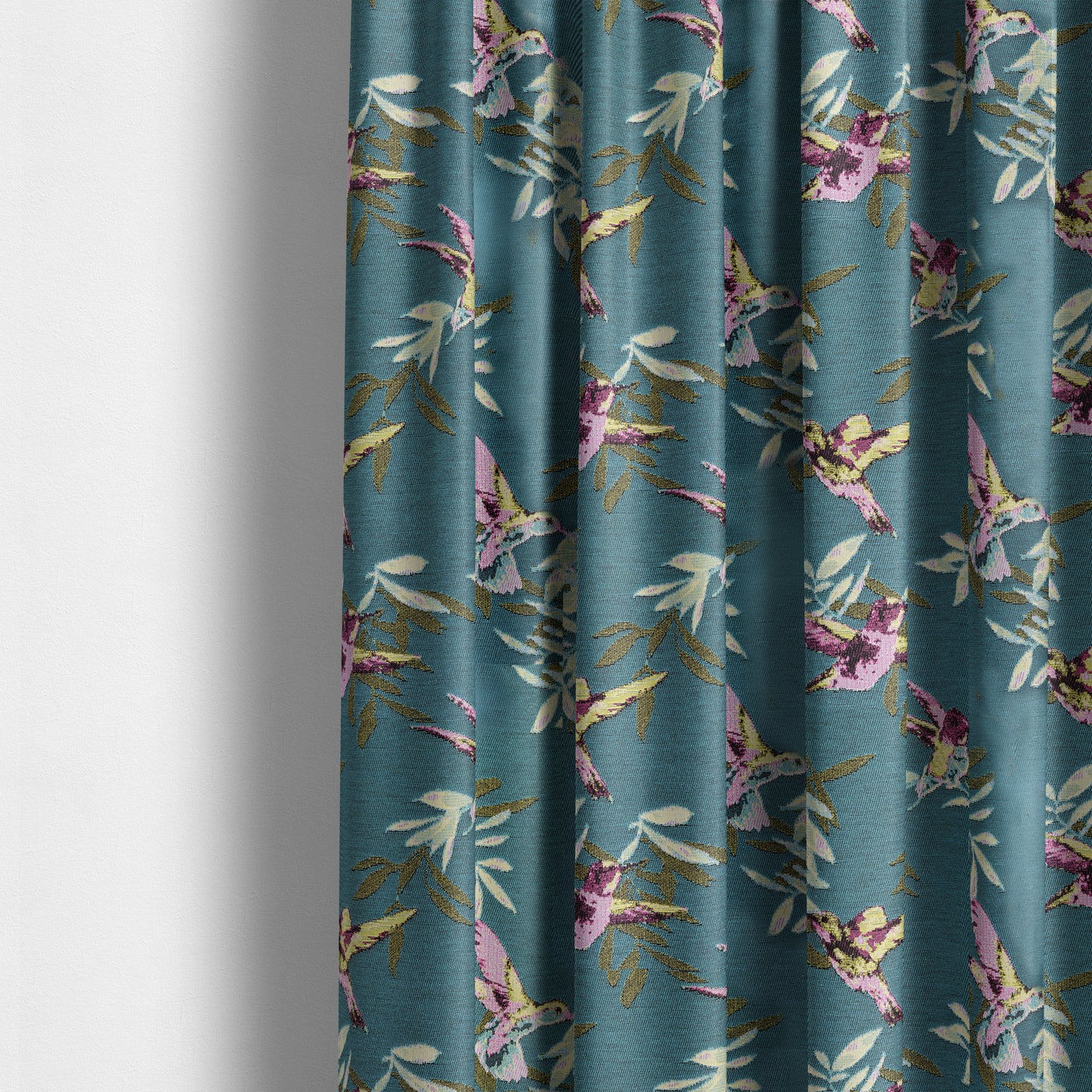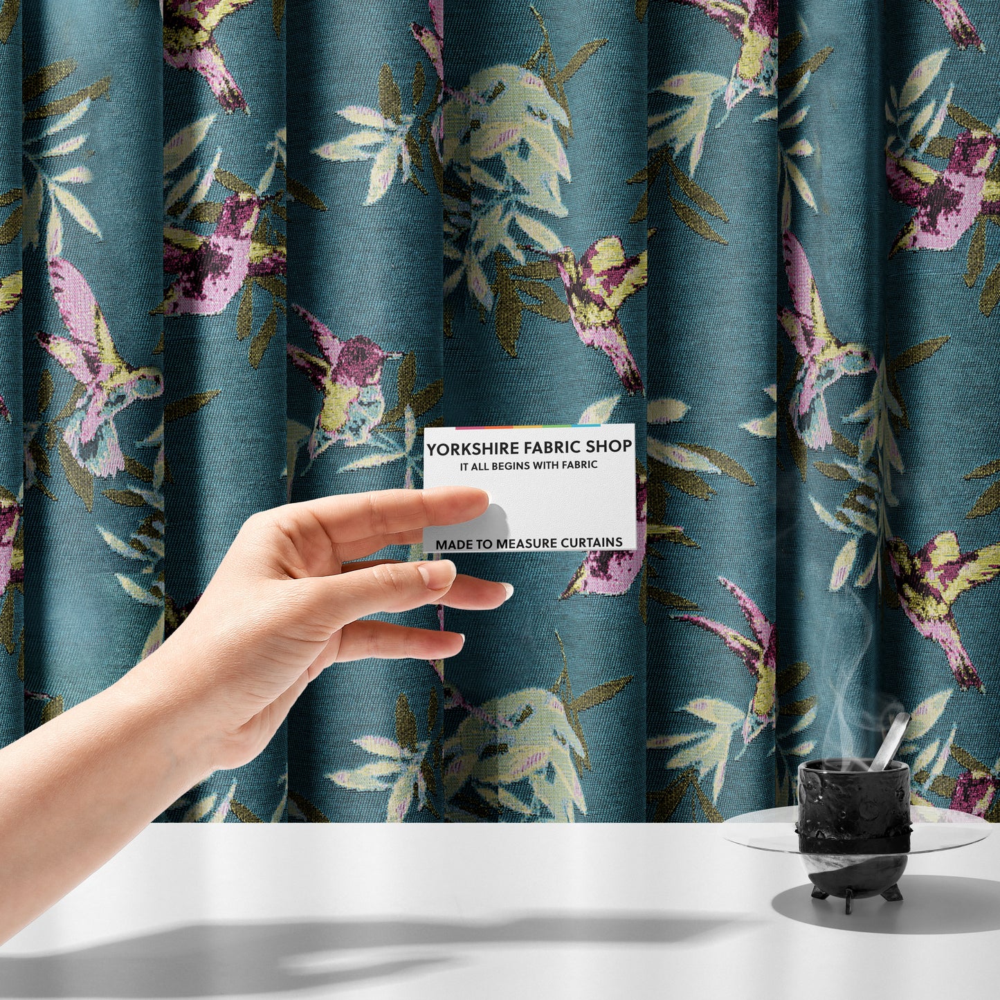 This Blue green kingfisher bird fabric is expertly crafted from chenille, making it ideal for upholstery and made-to-measure curtains. Its vibrant colour and playful animal pattern bring a touch of nature into any space. Enhance your home decor with this high-quality, customizable fabric.