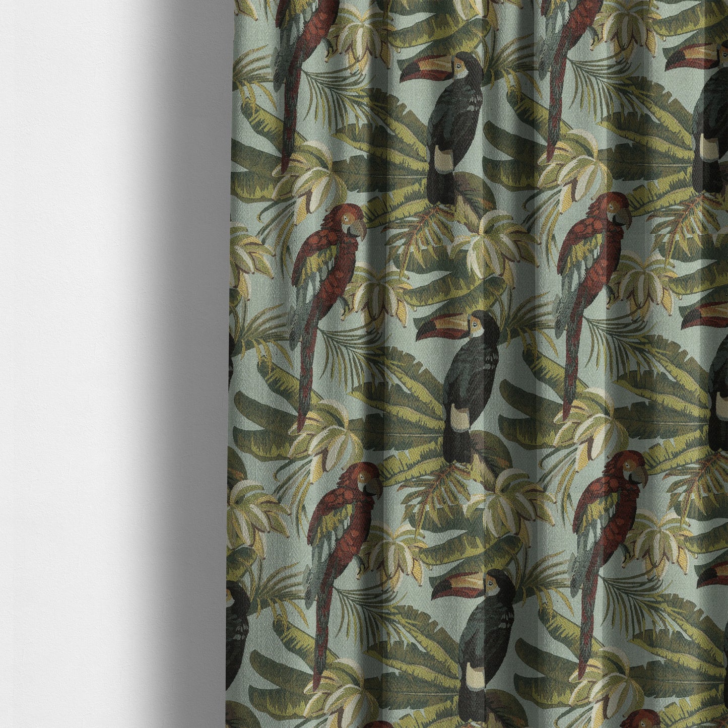 Elevate your home decor with Bruges life parrot all over pattern blue green red black jacquard upholstery fabrics ctr-710. Made to measure curtains ensure a perfect fit and add a touch of luxurious style with this vibrant and bold pattern. Bring nature indoors and upgrade your space with this elegant upholstery fabric.