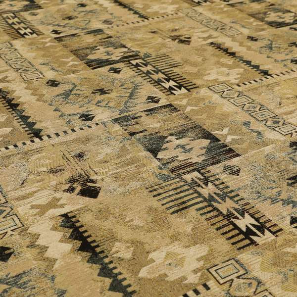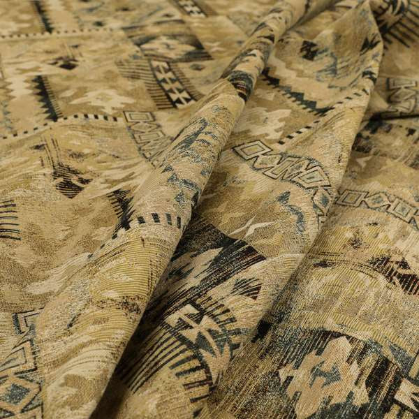 Expertly crafted with a modern tapestry kilim design, this chenille upholstery fabric is perfect for Roman blinds. With its aztec patchwork pattern in shades of blue and beige, this fabric will add a touch of style and sophistication to any room. Available as ctr-697.
