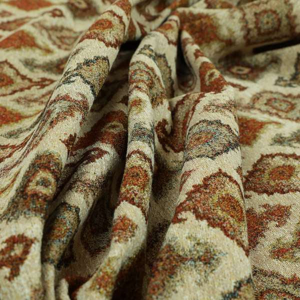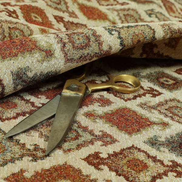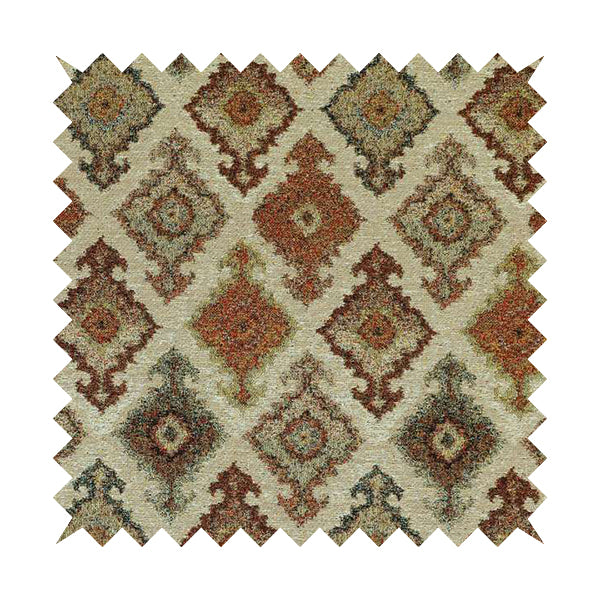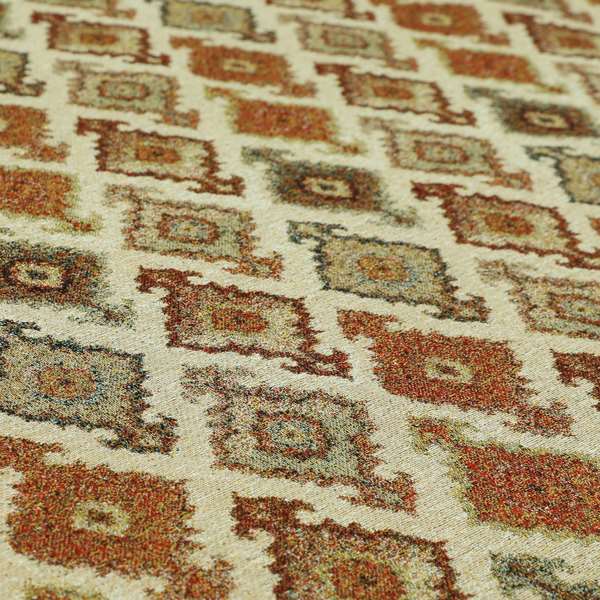 Expertly crafted with a modern twist, our Bruges upholstery fabric features a traditional tile design in white, orange, and green. Its geometric pattern adds a sophisticated touch to any room and pairs perfectly with Roman blinds. Elevate your decor with this timeless and versatile fabric.
