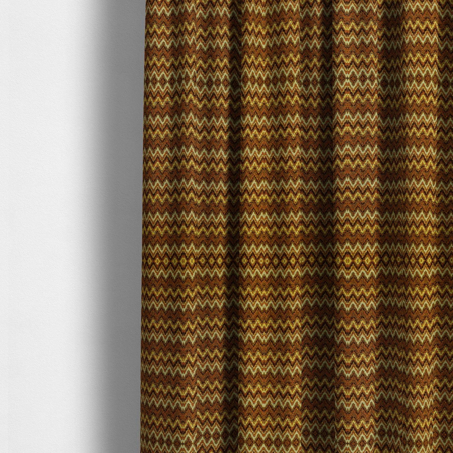 This Bruges stripe tapestry chenille upholstery fabric boasts a striking chevron pattern in bold shades of orange and red. Made to measure, these curtains will add a touch of sophistication and style to any room. Crafted with high-quality materials, this fabric is both durable and visually appealing.