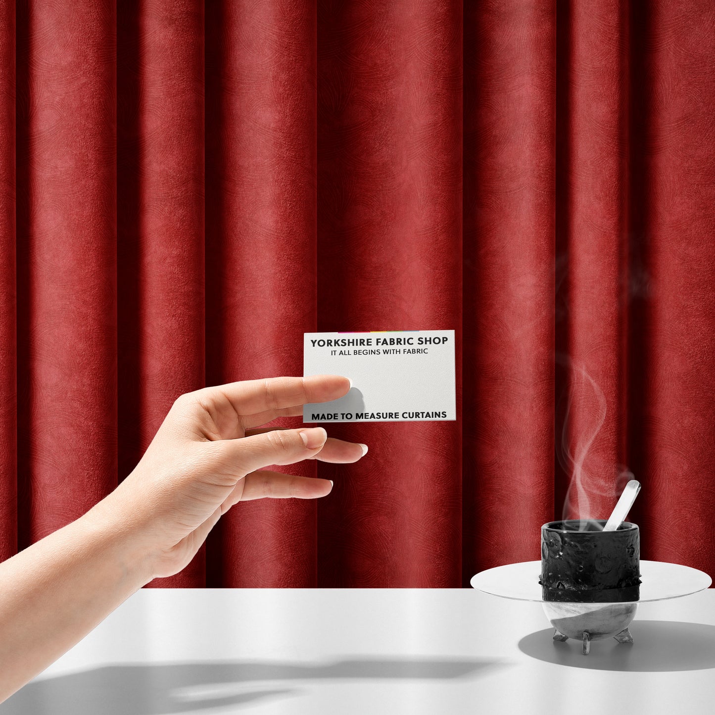 Elevate your home decor with our Cairo moleskin textured dull velvet claw pattern curtains, made with high-quality red fabric. Featuring a custom-made design, these curtains add a touch of luxury to any room. Bring sophistication and style to your space with our ctr-624 curtains.