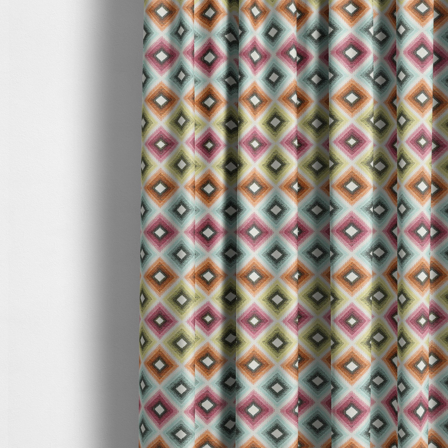Introducing the Carnival collection, featuring a vibrant multi-colour geometric pattern. Perfect for upholstery and curtains, this fabric adds a playful touch to any living space. Enjoy the durable quality and customize your curtains with our made-to-measure option. Elevate your home with Carnival Living.