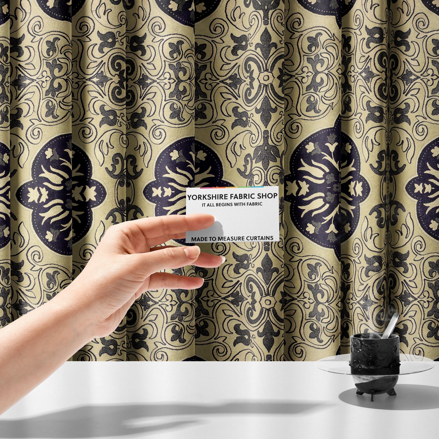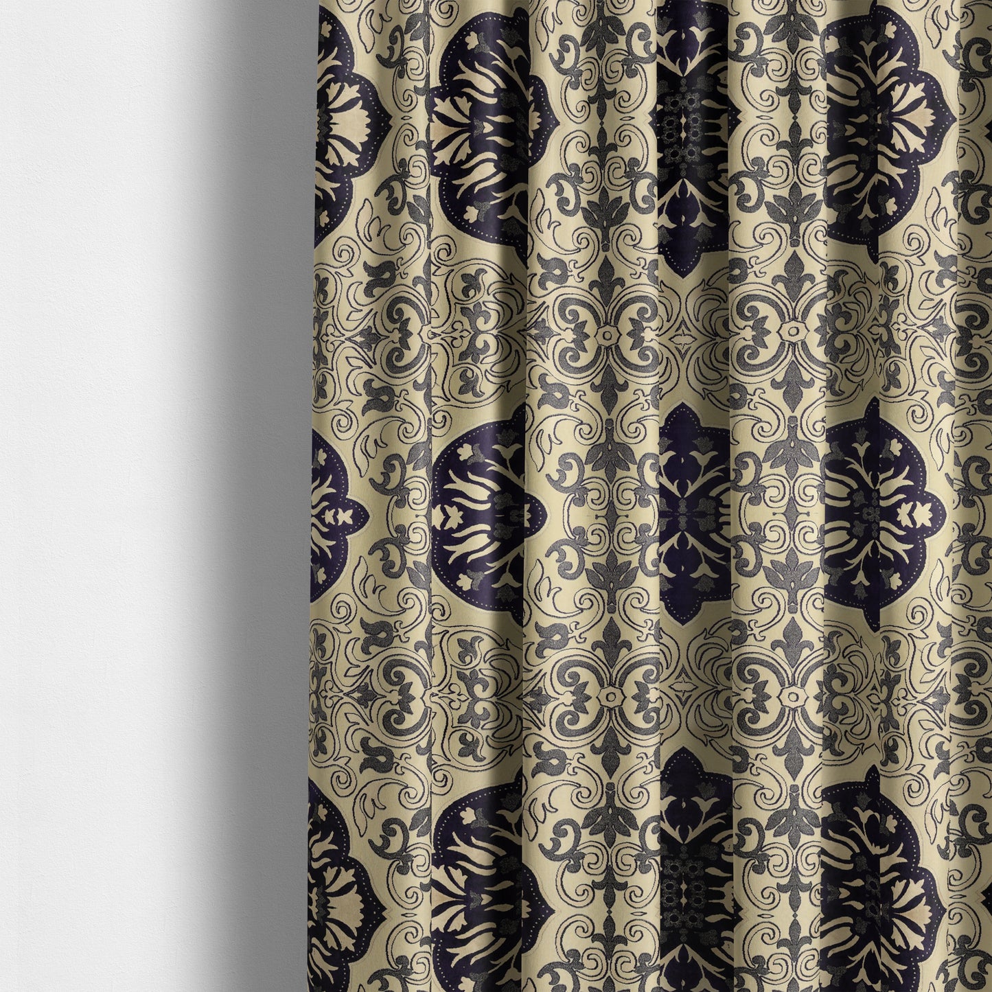 This Casablanca medallion pattern velvet textured furnishing fabric in purple colour offers a luxurious and stylish addition to your home decor. Its soft velvet texture adds comfort while the durable construction ensures longevity. Made-to-measure curtains provide a perfect fit for a tailored and sophisticated look. Elevate your living space with this elegant fabric.