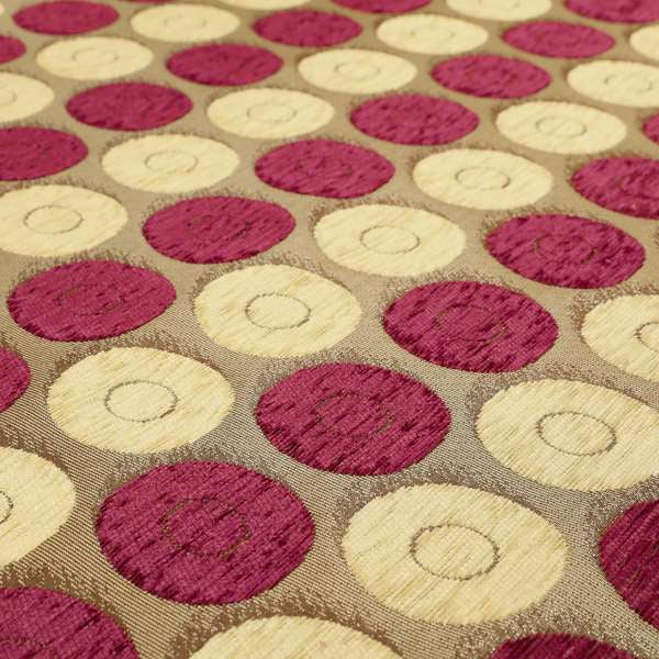 This high-quality Chinaz circular geometric pattern chenille upholstery fabric is perfect for Roman blinds. The rich gold, beige and pink colour combination adds a touch of elegance to any room. Made from durable materials, it offers both style and functionality. Upgrade your home decor today with this beautiful fabric.