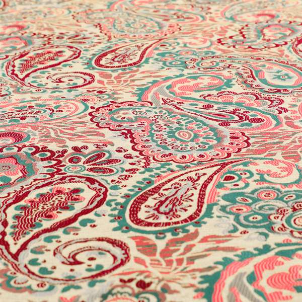 Add a touch of elegance to your home decor with our Colarto collection burgundy red teal colour in paisley pattern chenille furnishing fabric ctr-254. The rich burgundy colour, intricate paisley pattern, and luxurious chenille material will elevate any room. Use it to create beautiful Roman blinds that will impress any guest.