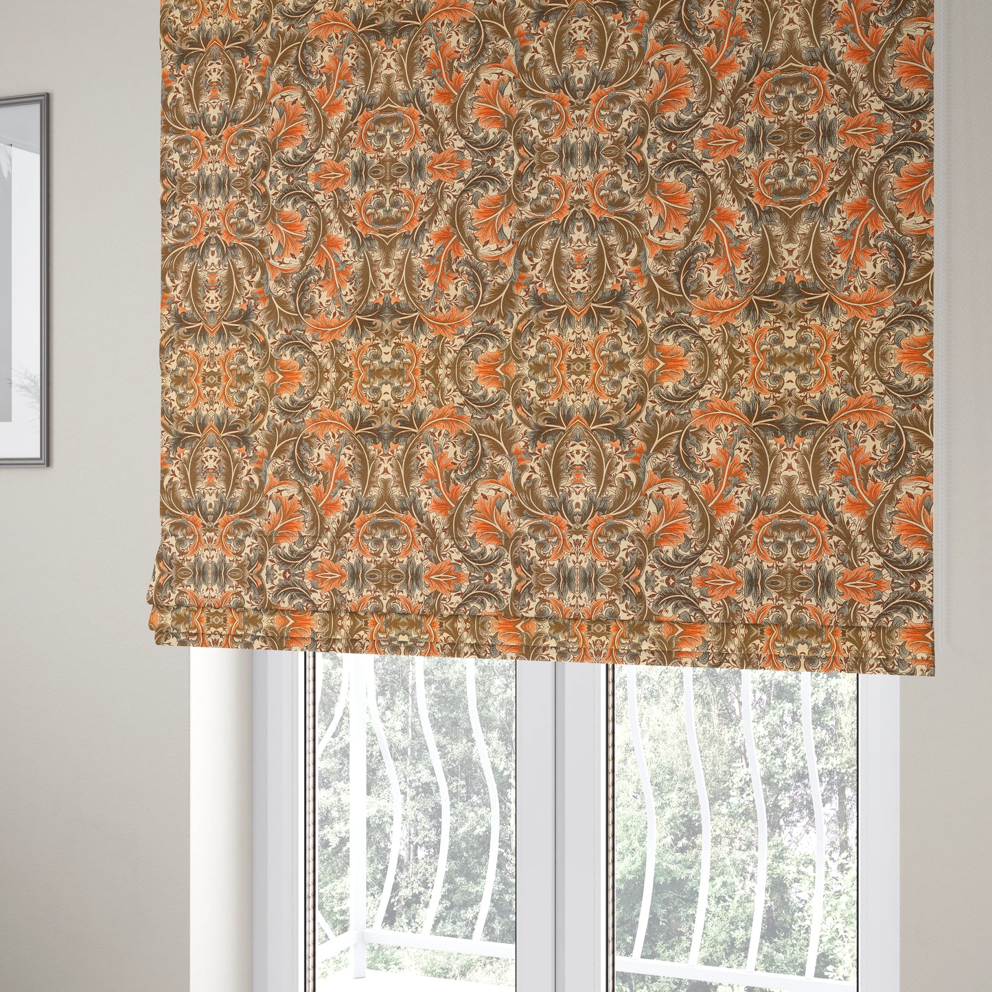 Discover the elegant and luxurious Colarto collection furnishing fabric, featuring a stunning orange brown floral pattern. Made with high-quality chenille material, this fabric is perfect for creating Roman blinds that will add a touch of sophistication to any room.