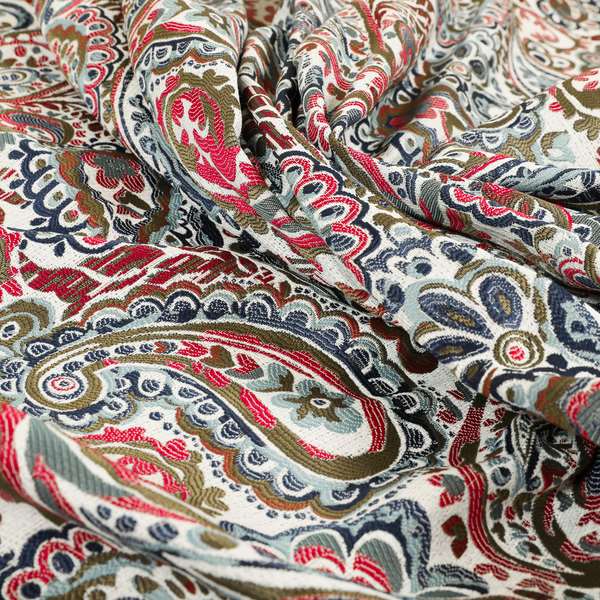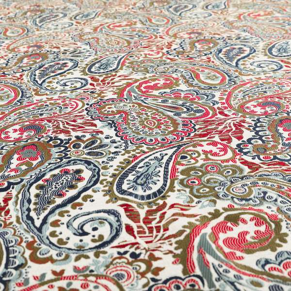 Discover the luxurious Colarto collection red blue paisley pattern chenille furnishing fabric. With a blend of rich colours and traditional design, this fabric is perfect for creating stylish Roman blinds. Enjoy the quality of chenille and elevate your home decor today.