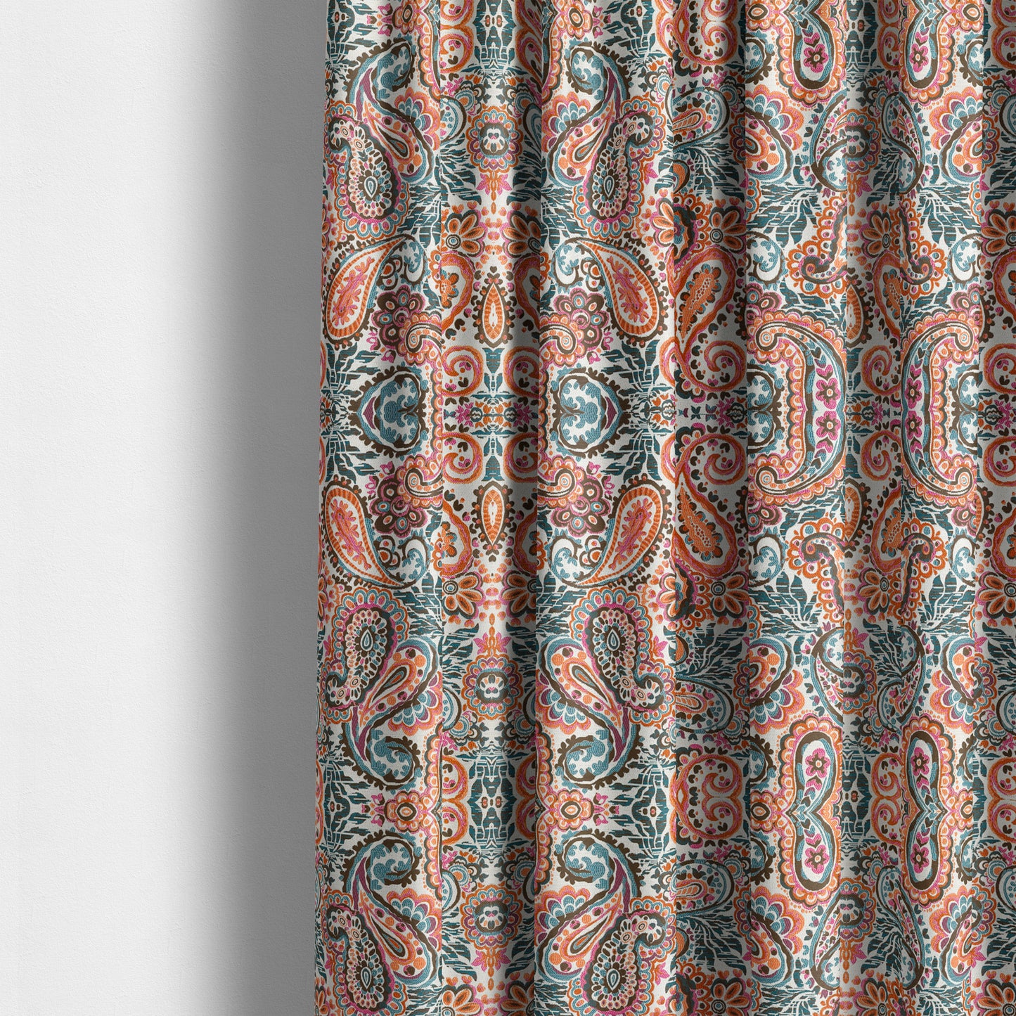 Elevate your interior design with our Colarto collection tropical colours in paisley pattern chenille furnishing fabric. Made to measure curtains add a touch of luxury to any room. Expertly crafted with the finest chenille, this fabric features a vibrant paisley pattern, bringing a tropical feel to your home.