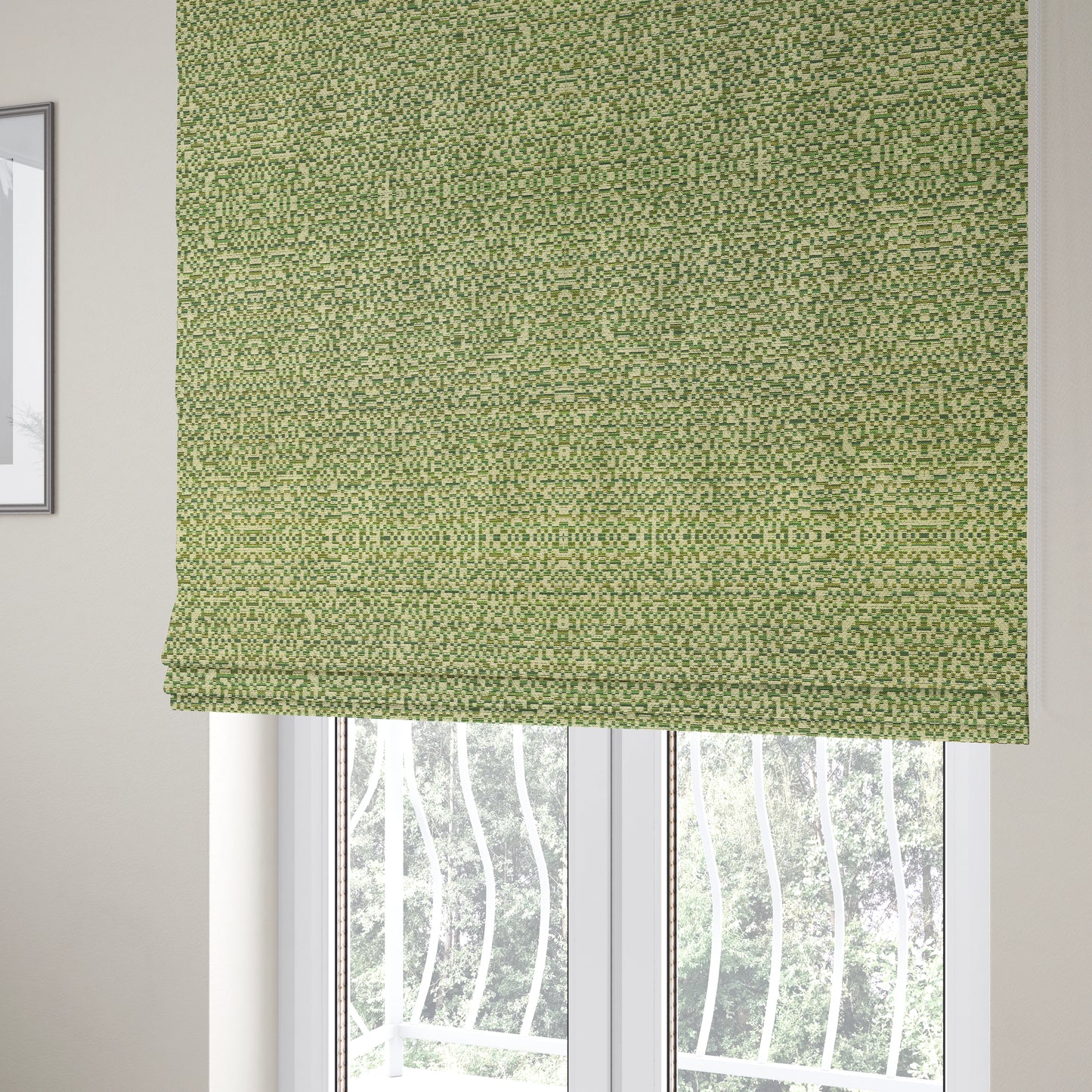 This comfy chenille textured upholstery fabric features a playful semi-plain Tetris pattern in a refreshing green hue. Perfect for adding a touch of character and colour to your interiors, this fabric is ideal for creating Roman blinds that are both stylish and cozy. Elevate your home decor with this unique and versatile piece.