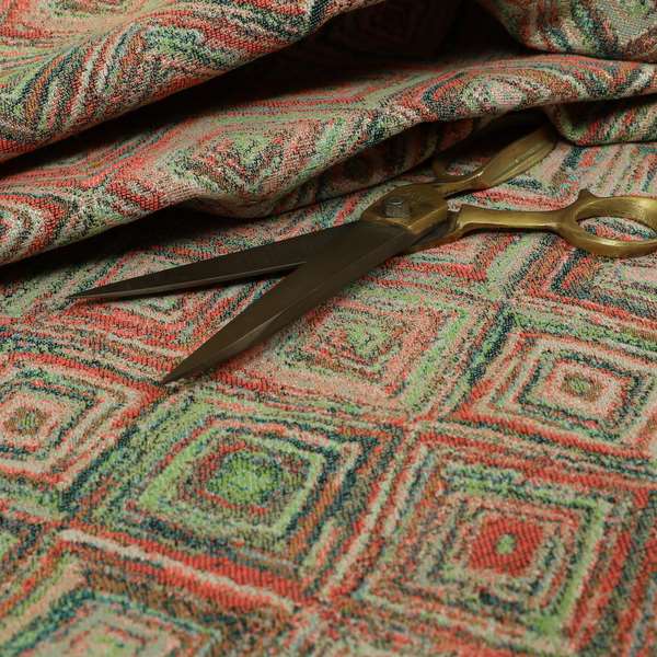 This luxurious chenille upholstery fabric features a unique cubed geometric pattern in shades of green, pink, and blue. The perfect choice for Roman blinds, this fabric will add a touch of modern sophistication to any room.