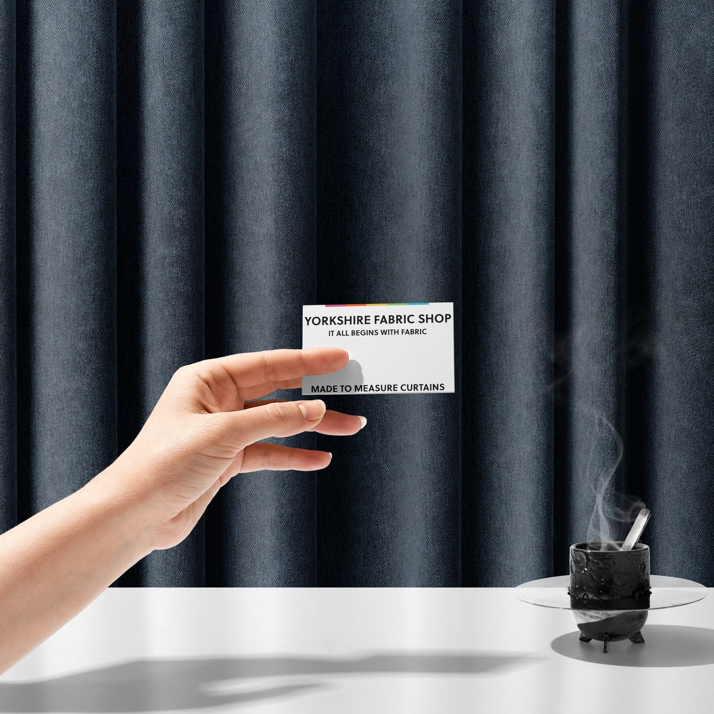 Experience the luxurious feel of Davos flat weave chenille upholstery fabrics in prussian blue. Our made to measure curtains offer a tailored fit and are guaranteed to elevate any room with a touch of elegance. Trust in our high-quality materials and impeccable craftsmanship.