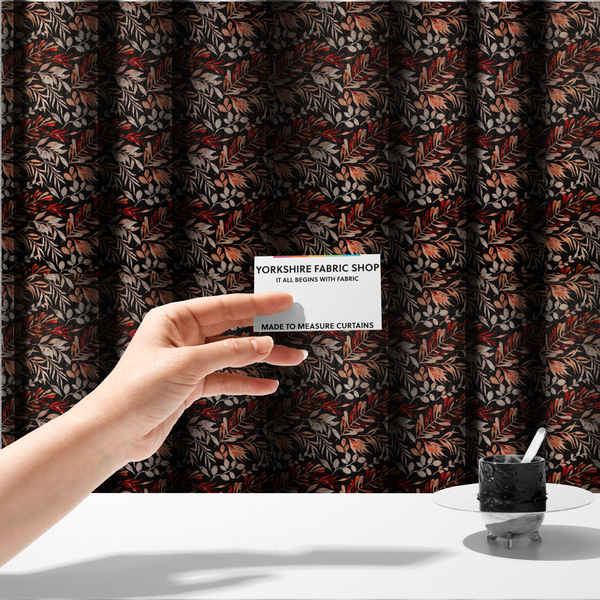 Transform your windows into a statement of bold elegance with this striking dark floral and leaf upholstery fabric. Perfect for made-to-measure curtains that demand attention, DP-13 brings dramatic botanical patterns to life with rich, moody tones. Whether you're channelling gothic glamour or contemporary sophistication, this fabric adds serious personality to any room. Crafted for durability and style, it's the perfect choice for those who refuse to blend into the background. Make your curtains the conversation starter they deserve to be.