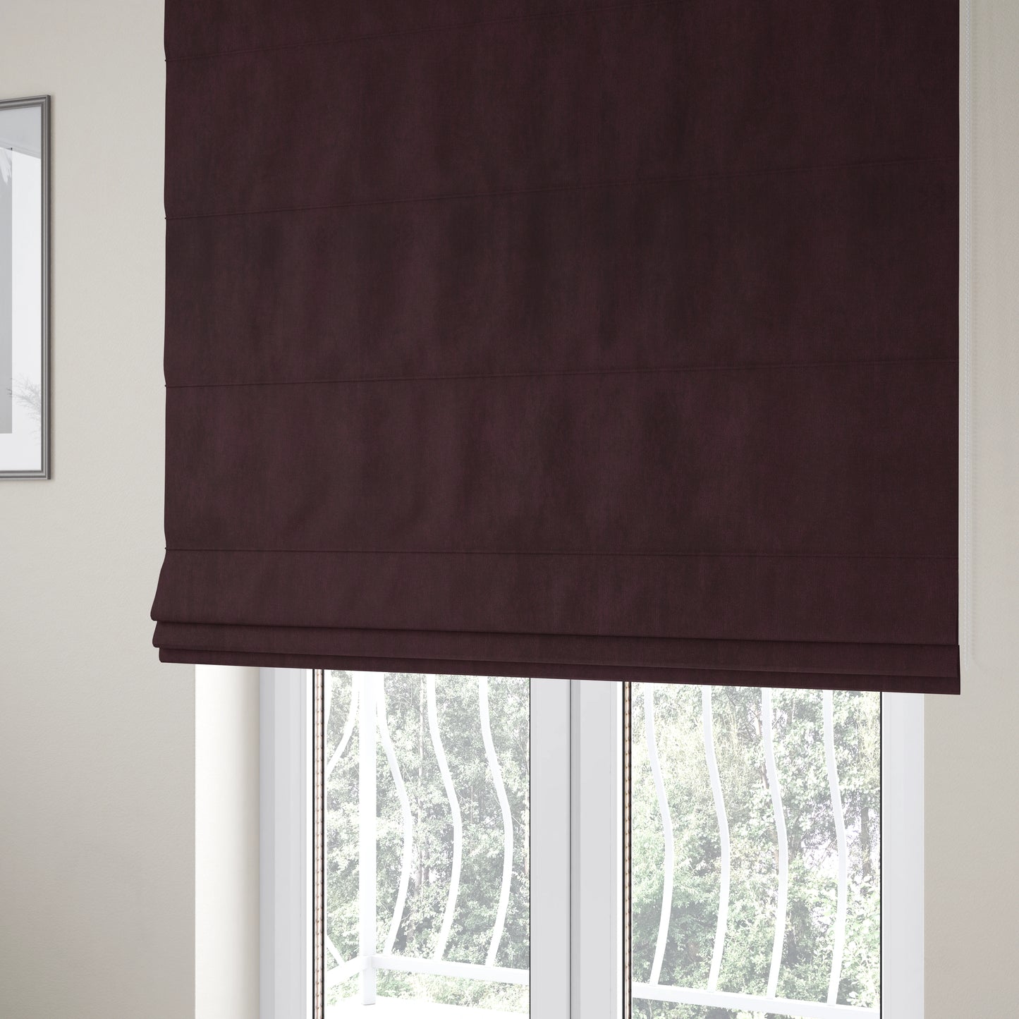 Introducing the Earley soft matt velvet chenille furnishing upholstery fabric in wine colour Roman blinds. Experience the luxurious softness and elegant texture of this fabric, perfect for creating stylish Roman blinds. Enhance any room with its beautiful wine colour, adding a touch of sophistication to your home decor.