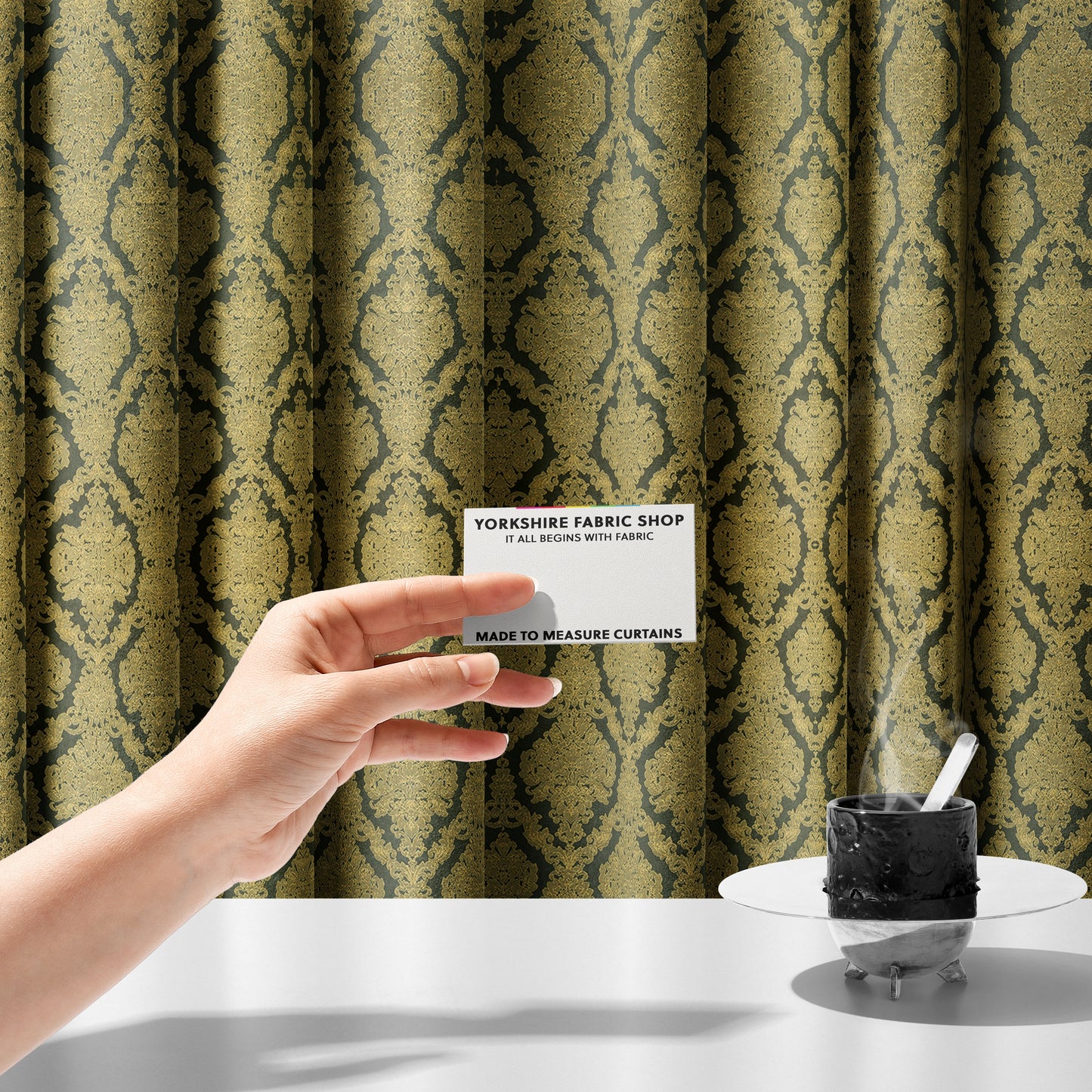 Bring a touch of elegance to your home with our Elstow damask pattern collection. The textured embroidery effect of this chenille fabric in green and yellow adds a luxurious feel to any room. Made to measure for perfectly fitting curtains. Transform your space with this sophisticated and stylish fabric.