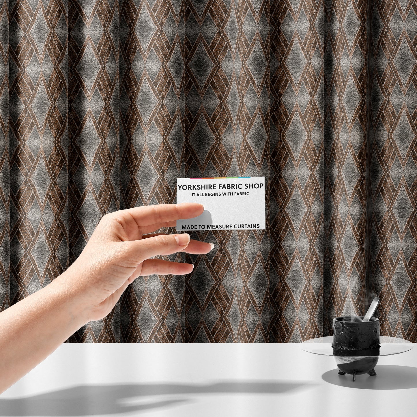 Expertly crafted with a decorative weave, our Elwin jacquard fabric features a stylish grey, orange, and geometric hexagon pattern. Made to measure curtains offer a perfect fit for any space, adding a touch of modern sophistication. Elevate your home decor with this timeless and versatile design.