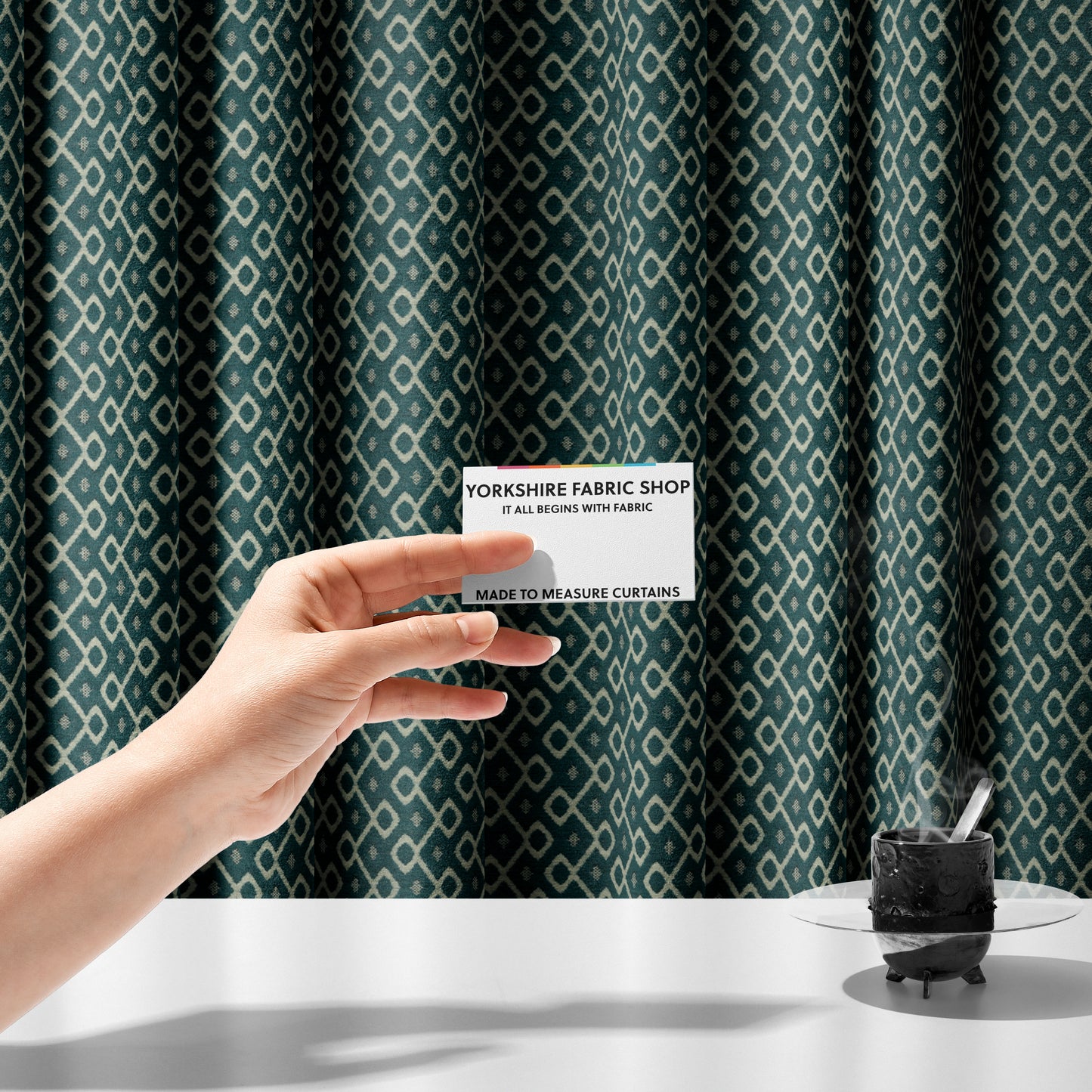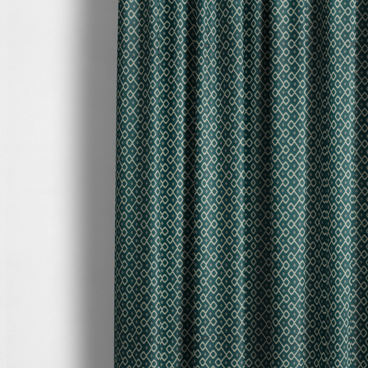 Introducing Erum geometric patterned weave blue teal colour upholstery fabric ctr-2510, perfect for made to measure curtains. Add a touch of sophistication and style to your home with this unique, high-quality fabric. With its durable construction and eye-catching design, it is sure to elevate any space.
