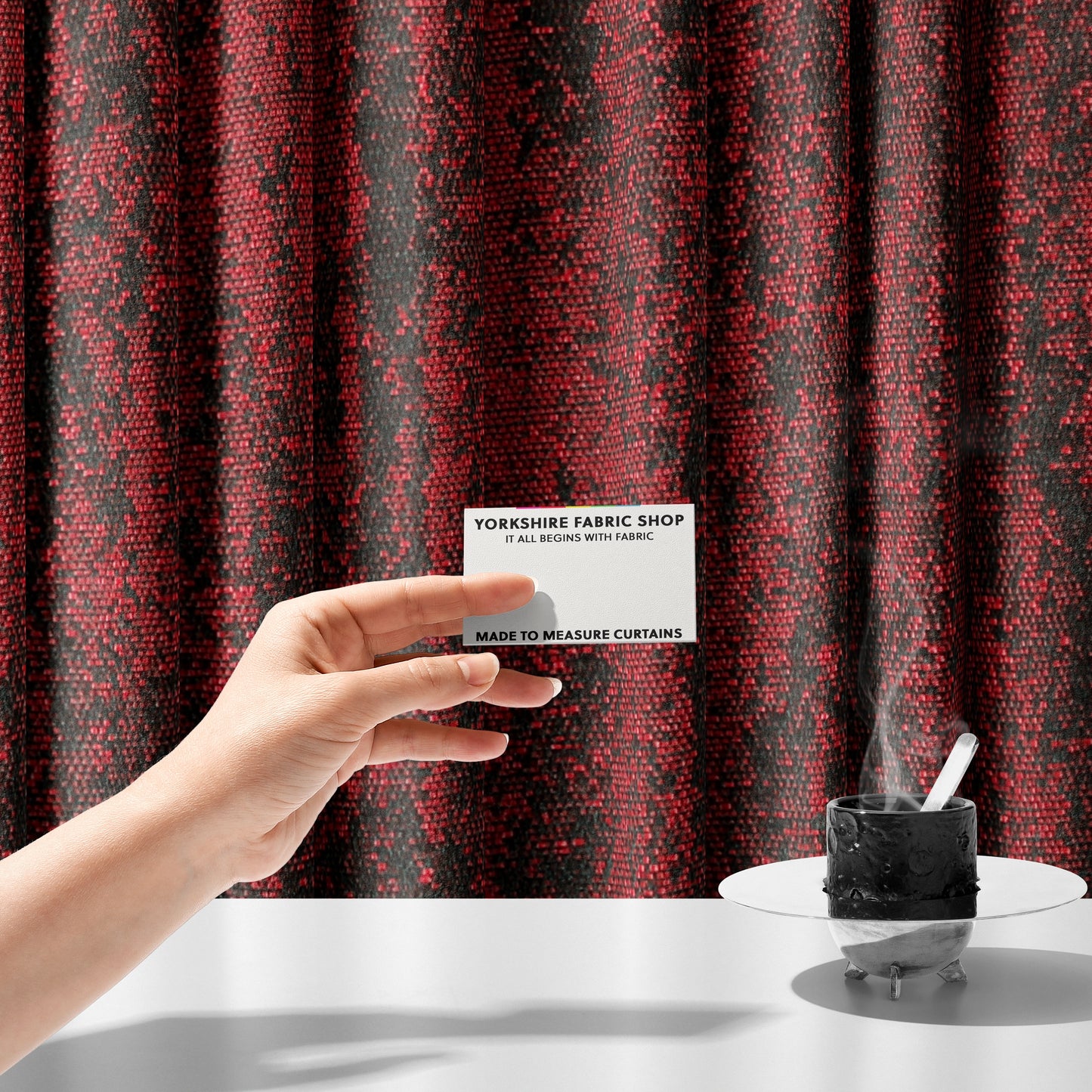 Introduce rich color and texture to your space with our Fabriano semi plain chenille upholstery fabric. The abstract burgundy red and black design adds a touch of sophistication, while the custom-made curtains create a perfect fit for any window. Elevate your decor with this luxurious fabric.