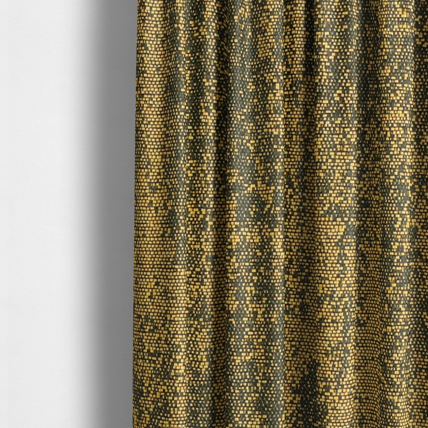 Upgrade your upholstery with Fabriano abstract semi plain chenille type yellow black fabric. Made with quality chenille material, this fabric adds a touch of sophistication to any room. Perfectly measured for curtains, it provides a stylish and customized solution for your home decor.