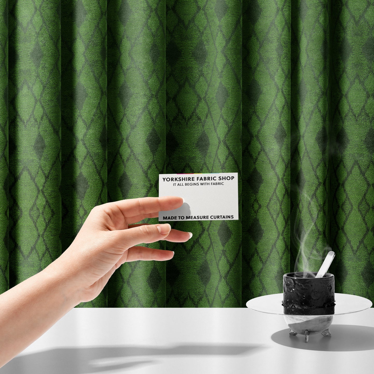 Elevate any space with our Fabriano diamond pattern chenille type green upholstery fabric. This fabric boasts a luxurious and durable chenille construction, featuring a stunning diamond pattern in a vibrant green hue. Perfect for creating custom curtains that add both style and functionality to your decor.