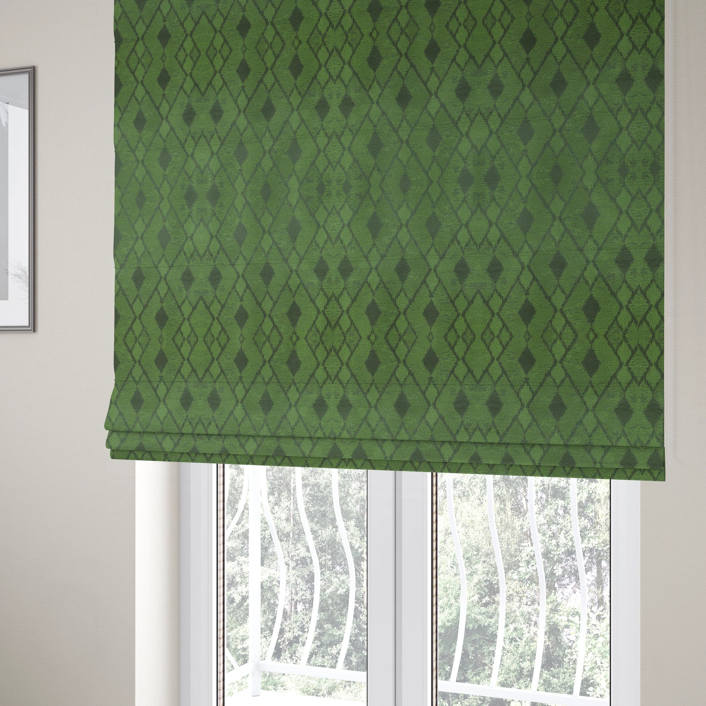 Create elegant and durable Roman blinds with our Fabriano diamond pattern chenille type green upholstery fabric. Its intricate design adds a touch of sophistication to any space, while the fabric's quality ensures long-lasting beauty. Transform your windows with our ctr-923 fabric.