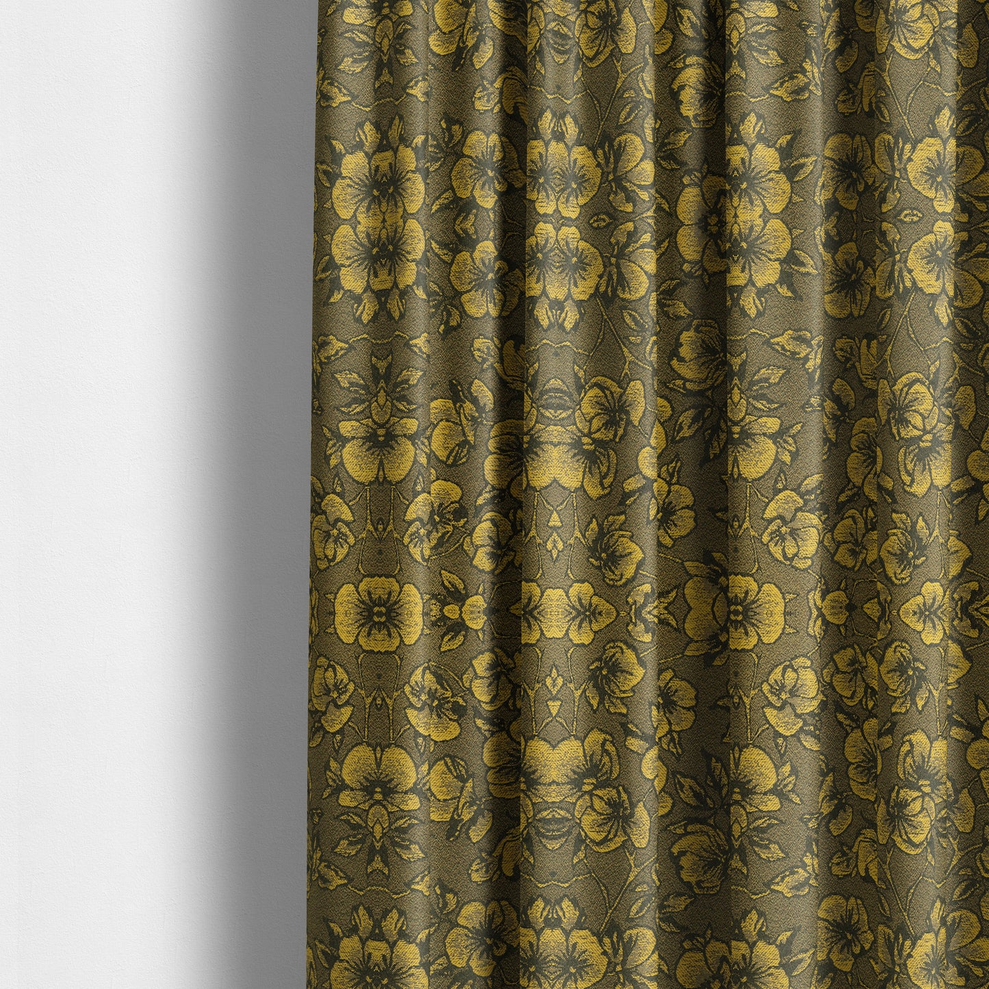Expertly crafted Fabriano floral pattern chenille type fabric for luxurious upholstery. The bold yellow and black colours add a touch of elegance to any room. Made to measure curtains ensure a perfect fit. Transform your space with this high-quality fabric.