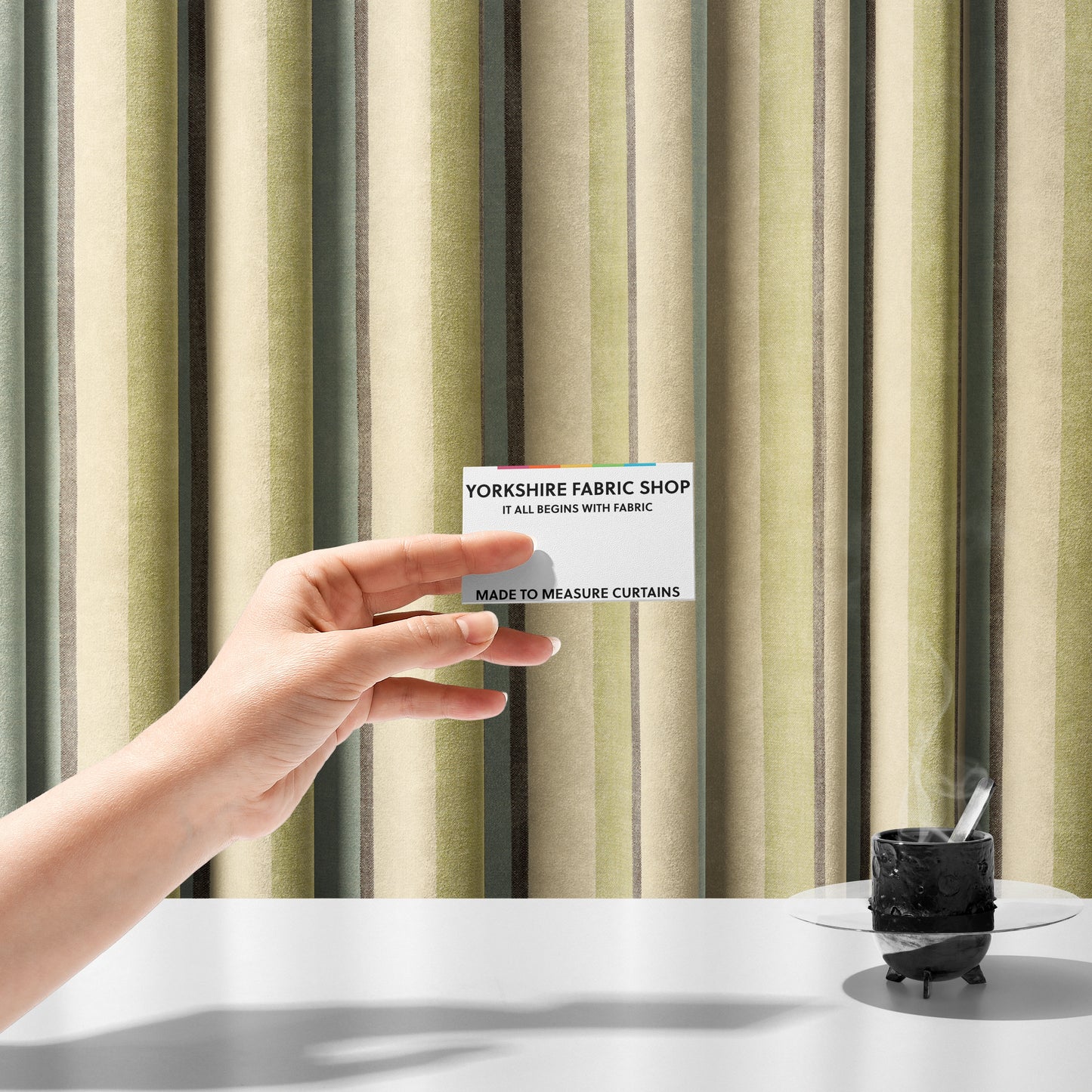 Transform any room with our Falkirk Scottish inspired chenille upholstery fabric in a beautiful blue and green striped pattern. Made to measure curtains offer a perfect fit while adding a touch of sophistication and warmth to your home decor. Crafted with high-quality materials for long-lasting durability.
